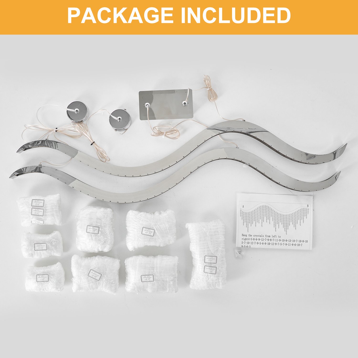 Dangling Wave Crystal ChandeliersGive your home decor an elegant and modern update with this stunning contemporary chandelier. The unique wave design and sparkling crystal pendants make the light from each bulb appear as if it were dancing throughout your room.(Maximum Wire Length : 59 inches. Uses LED light source with color temperature: 3000K,4000K,6000K .high-quality materials:Stainless steel chrome + K9 crystal.)